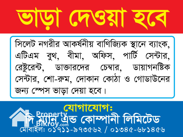 সিলেট নগরীর উপশহরস্থ গার্ডেন টাওয়ারের ২য়তলায় ৫,১০০ বর্গ ফুট জায়গা ভাড়া দেয়া হবে। এছাড়াও গার্ডেন টাওয়ার এবং স্প্রীং গার্ডেনে ব্যাংক, বীমা, অফিস, বাণিজ্যিক প্রতিষ্ঠান, শো-রুম ও দোকান কোঠার জন্য ভিন্ন ভিন্ন আয়তনে প্রায় ৫০,০০০ বর্গফুট ভাড়া দেয়া হবে। (আয়তন অনুযায়ী পৃথকভাবে স্পেস ভাড়া দেয়া হবে) এছাড়াও কর্পোরেট প্রতিষ্ঠানের বৃহৎ গোডাউনের জন্য পৃথক জায়গা আছে। (ভাড়া দেয়া হবে প্রতি বর্গফুট হিসাবে/ আলোচনা সাপেক্ষে)।